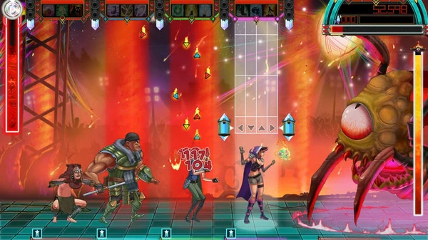 Packing in a fully-fledged story mode with a colourful cast of musically-empowered heroes and villains, The Metronomicon sees you take control of a party of eight newly graduated masters of the “rhythmic combat arts” to wage musical warfare against a multitude of dance-mongering fiends. By switching between four concurrent hero-controlled tracks on-the-fly, you’ll select and activate a wide array of abilities, buffs and nukes, with your performance and timing all-important in ensuring the effectiveness of your moves. In the RPG spirit, you’ll need to improve your characters’ stats, hunt down powerful equipment, and combine a multitude of newly-learned abilities – switching between tanking, healing, buffing, and damage-dealing classes as required in real time.